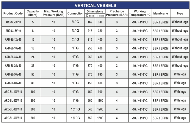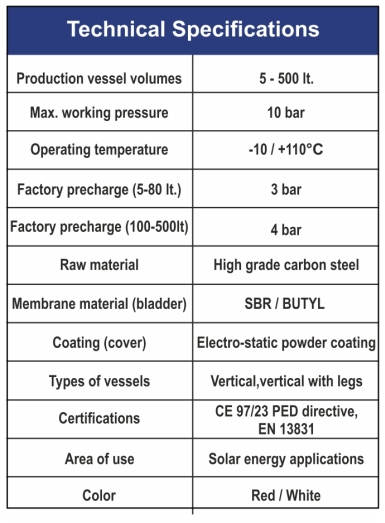 In the solar circuit fhe particularly high temperature requires heat relief. The solar liquid reaches temperatures very high. Evaporates and can reach the solar station damaging essential parts such as pumps, fittings, gsskeis and above all the lank membrane. Our special synthetic rubber membrane is specifically designed for SOLARLINE expansion vessels tanks, suitable to absorb the water expansion volume generated by a changing temperature, as well as tanks for cold water sanitary systems.